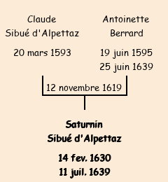Père : Claude Sibué d'Alpettaz | Parrain : Saturnin Boisson (fils de Jean Baptiste) |