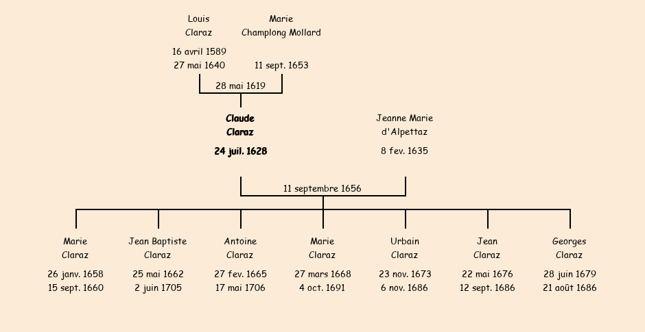 Père : Louis Claraz (dit Porret) | Parrain : Claude Mollard (fils d'Antoine) |