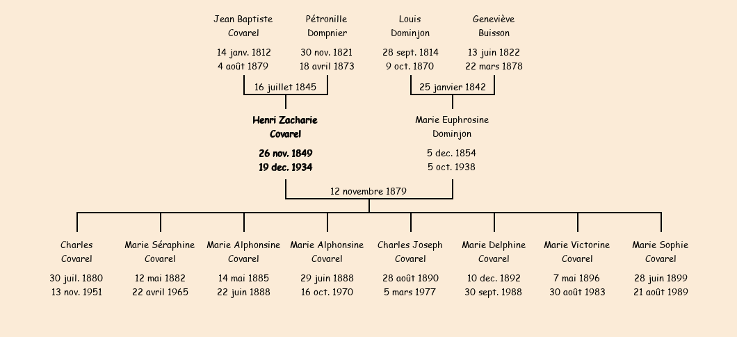 Henri Zacharie Covarel apparait dans le dénombrement de la population de 1881. |