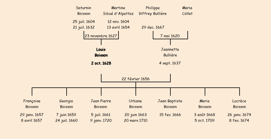 Père : Saturnin Boisson, fils de Jean Baptiste | Parrain : Louis Boisson (fils du dit Jean Baptiste) |