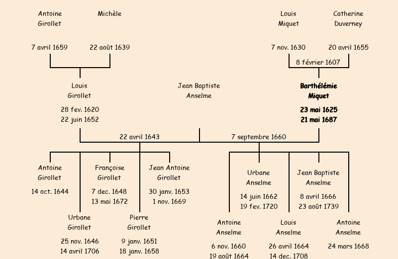 Mère : Catherine | Marraine : Barthélémie (épouse de Jean Miquet) |
