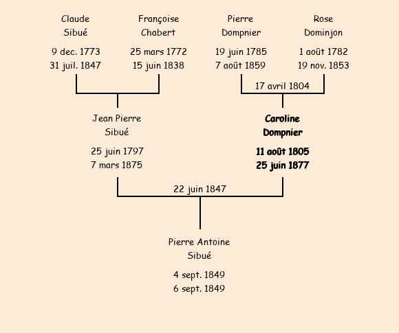 Père : Pierre Dompnier, fils de Pierre Antoine | Parrain : Sébastien Dominjon (grand-père maternel) |