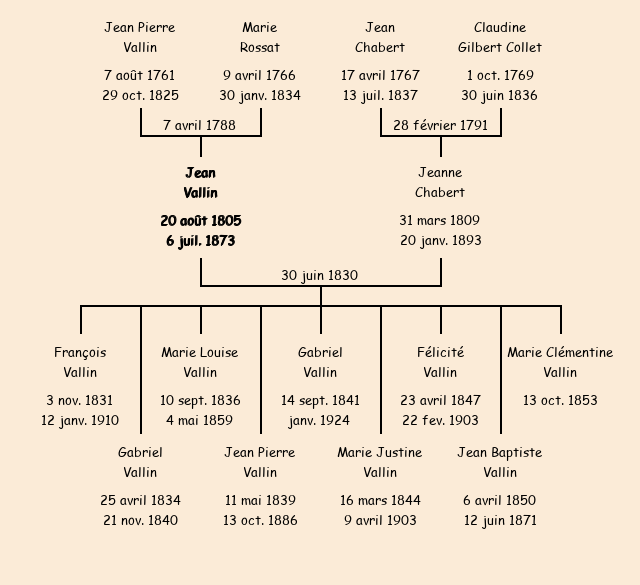 Epoux : Jean Pierre Vallin, fils de feu Jean Pierre et de Marie Rossat |