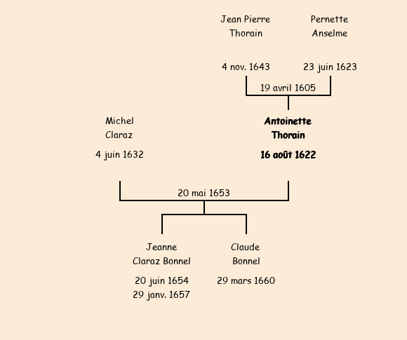 Père : Jean Pierre Thorain, fils de Jean | Parrain : Louis Claraz (égrège) |
