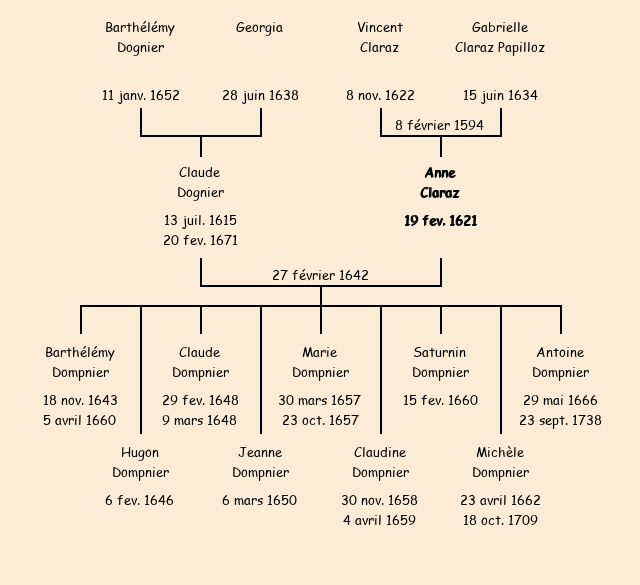 Mariée (21 ans) avec Claude Dognier (26 ans) le 27 février 1642 à Fontcouverte ![]() |