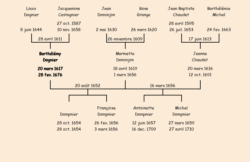 Marié (35 ans) avec Marmette Dominjon (33 ans) le 20 août 1652 à Fontcouverte ![]() |