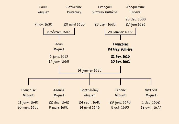 Mariée (22 ans) avec Jean Miquet (25 ans) le 14 janvier 1638 à Fontcouverte ![]() |