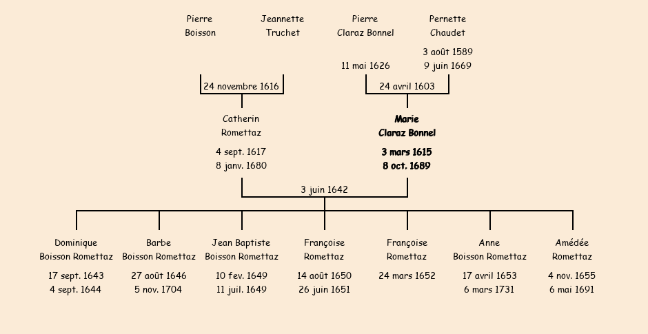 Mariée (27 ans) avec Catherin Romettaz (24 ans) le 3 juin 1642 à Fontcouverte ![]() |