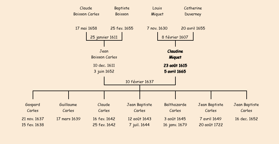 Mariée (21 ans) avec Jean Boisson Carles (25 ans) le 10 février 1637 à Fontcouverte ![]() |