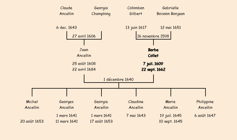 Mariée (31 ans) avec Jean Ancellin (32 ans) le 1 décembre 1640 à Fontcouverte ![]() |