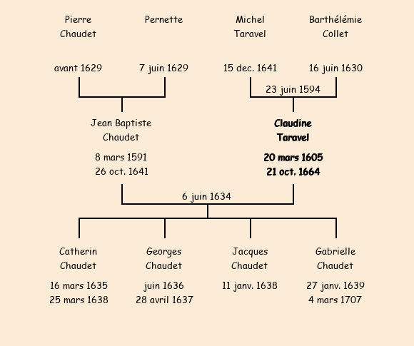 Mariée (29 ans) avec Jean Baptiste Chaudet (43 ans) le 6 juin 1634 à Fontcouverte ![]() |