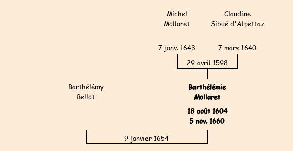 Mariée (49 ans) avec Barthélémy Bellot le 9 janvier 1654 à Saint-Jean-de-Maurienne |