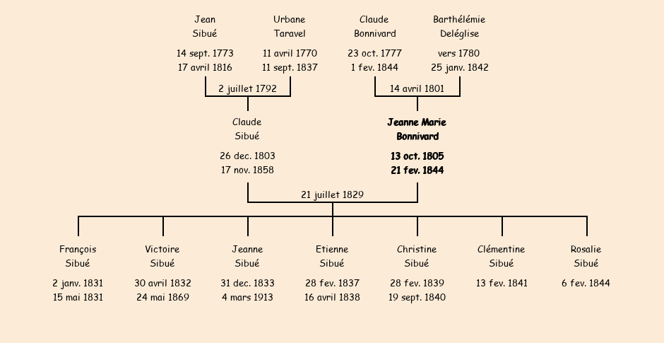 Epoux : Claude Sibué, fils de feu Jean et de Albane Taravel |