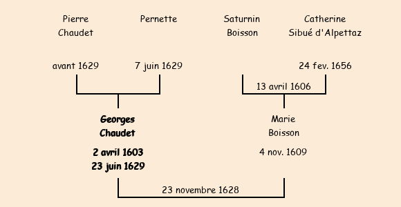 Epoux : Georges Chaudet, fils de feu Pierre et de Pernette |