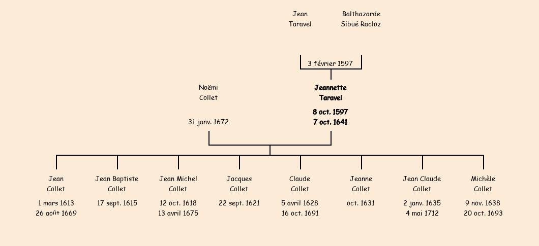 Mère : Baptiste | Marraine : Jeannette Taravel (fille de François décédé) |