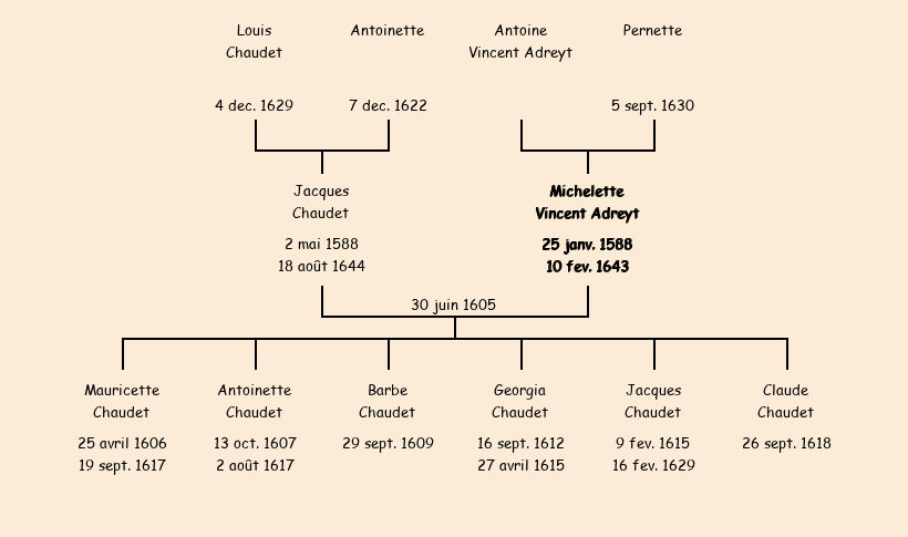Epoux : Jacques Chaudet (fils naturel de Louis égrege), fils de Louis |