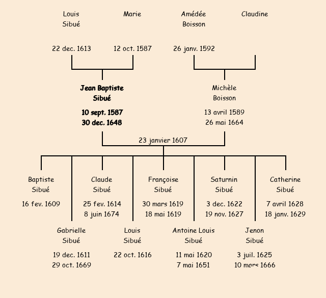 Plusieurs décès de Jean Baptiste Sibué fils de Louis entre 1653 et 1667. |