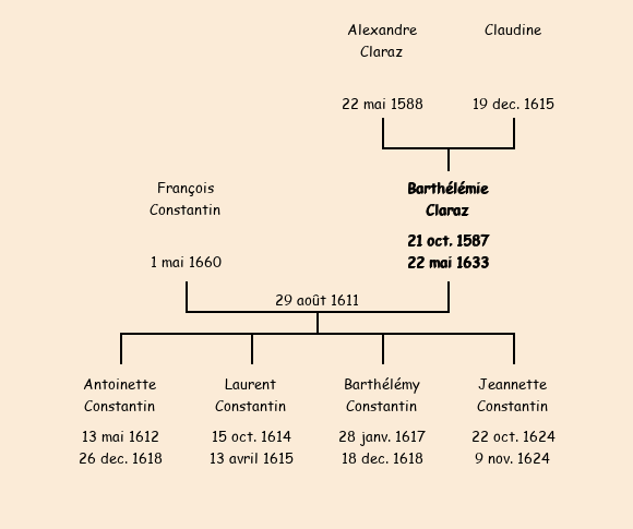 Mère : Claudine | Marraine : Barthélémie Claraz (fille de Michel) |