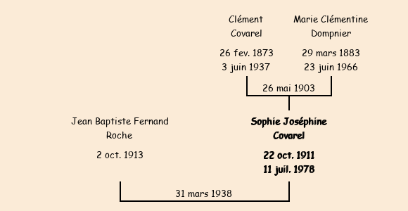 Epouse : Sophie Joséphine Covarel (26 ans, née à Fontcouverte le 22 octobre1911, de La Rochette), fille de feu Clément et de Marie Clémentine Dompnier |