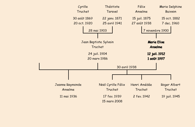 Epouse : Marie Elise Anselme (25 ans, née à Fontcouverte le 12 juillet1912, du Villard), fille de Félix et de Delphine Buisson |