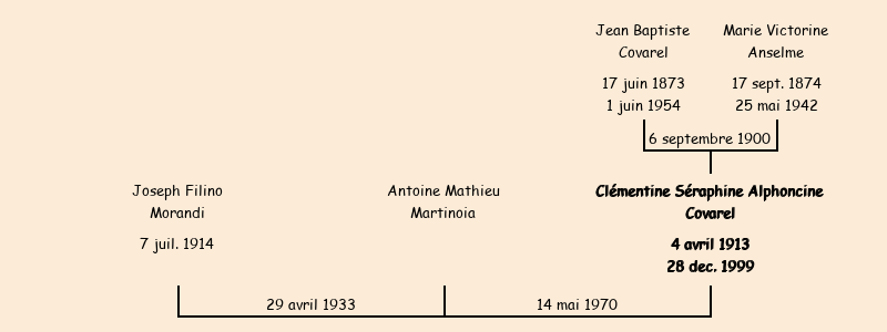 Mariée (20 ans) avec Joseph Filino Morandi (18 ans) le 29 avril 1933 à Fontcouverte |