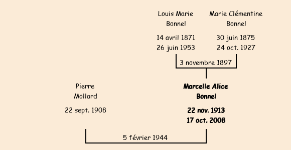 Mariée (30 ans) avec Pierre Mollard (35 ans) le 5 février 1944 à Fontcouverte |