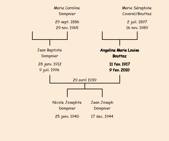 Epouse : Angeline Marie Louise Bouttaz (22 ans, née à Fontcouverte le 11 février1917, des Anselmes), fille de Marie Séraphine Bouttaz |