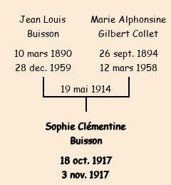 Père : Jean Louis Buisson (27 ans, présentement mobilisé aux armées) | Parrain : - |