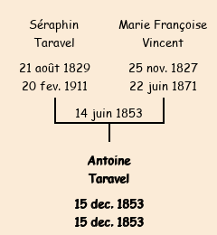 Père : Séraphin Taravel, fils de Pierre Antoine (laboureur) | Parrain : - |