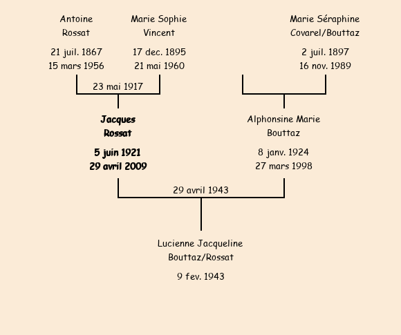 Epoux : Jacques Rossat (21 ans, né à Fontcouverte le 5 juin1921, domicilié à la Curiaz), fils de Antoine et de Marie Sophie Vincent |
