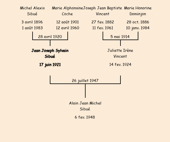 Epoux : Jean Joseph Sylvain Sibué (26 ans, né à Fontcouverte le 17 juin1921, domicilié à La Bise), fils de Michel Alexis et de Marie Alphonsine Coche |