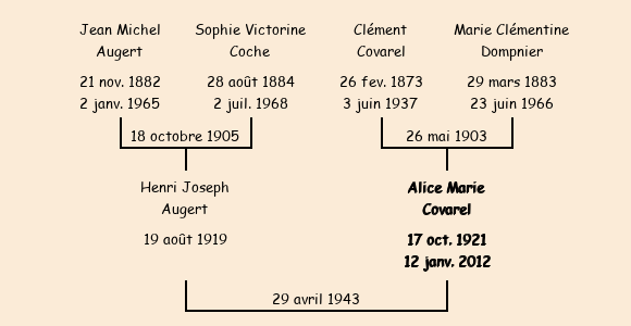 Mariée (21 ans) avec Henri Joseph Augert (23 ans) le 29 avril 1943 à Fontcouverte |