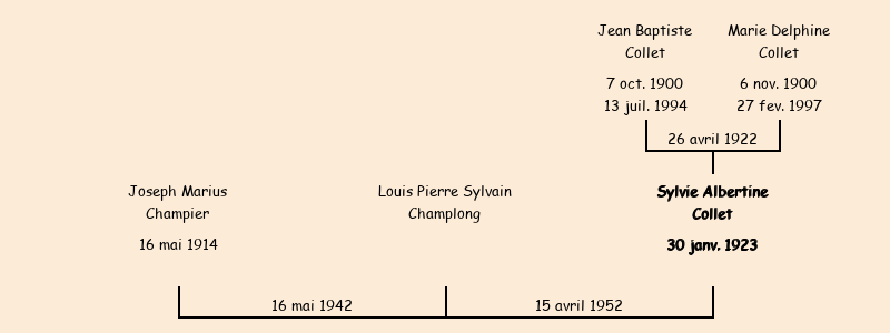 Epoux : Joseph Marius Champier (28 ans, né à Saint Pancrace le 16 mai1914, domicilié à Saint Pancrace hameau du Chosalet), fils de feu Jean Marie et de Joséphine Ariello |