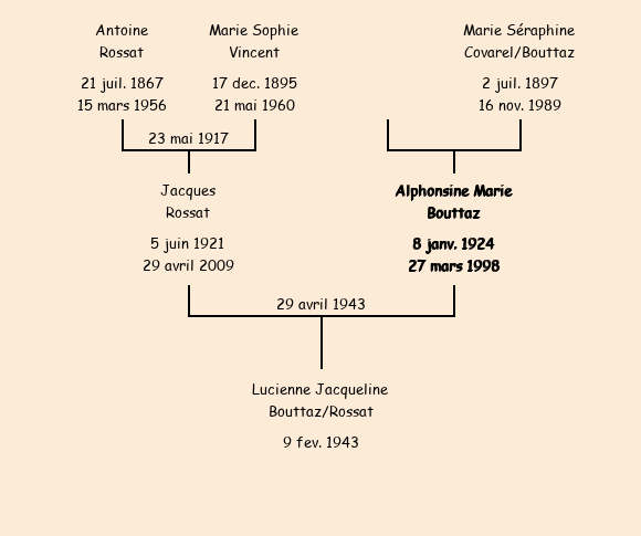 Epouse : Alphonsine Marie Bouttaz (19 ans, née à Fontcouverte le 8 janvier 1924, des Anselmes), fille de Marie Séraphine Bouttaz |