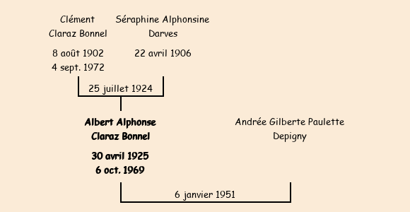 Marié (25 ans) avec Andrée Gilberte Paulette Depigny le 6 janvier 1951 à Lancrans |