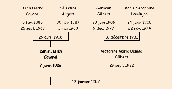 Marié (31 ans) avec Victorine Marie Denise Gilbert (24 ans) le 12 janvier 1957 à Fontcouverte |