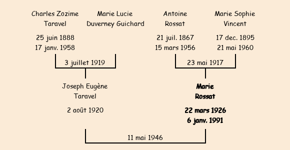 Epoux : Joseph Eugène Taravel (25 ans, né à Villarembert le 22 août1920, domicilié à Villarembert), fils de Charles Zozime et de Marie Lucie Duverney Guichard (domiciliés à Villarembert) |