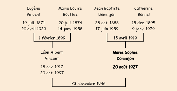 Mariée (19 ans) avec Léon Albert Vincent (29 ans) le 23 novembre 1946 à Fontcouverte |
