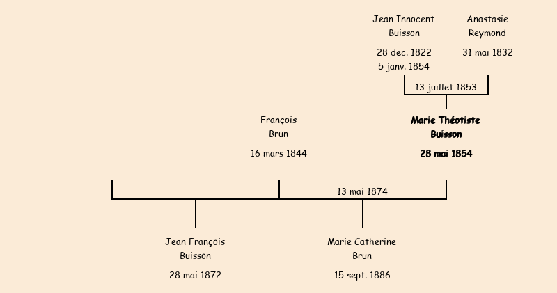 Mariée (19 ans) avec François Brun (30 ans) le 13 mai 1874 à Villarembert |