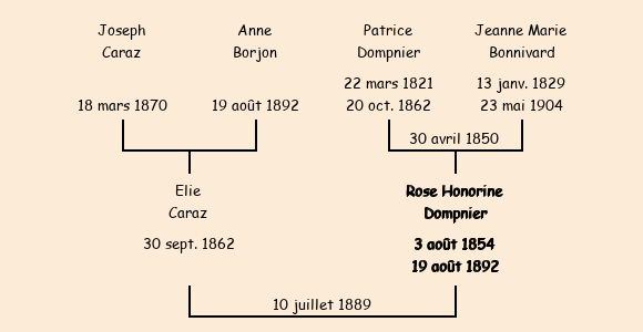Mariée (34 ans) avec Elie Caraz (26 ans) le 10 juillet 1889 à Fontcouverte ![]() |