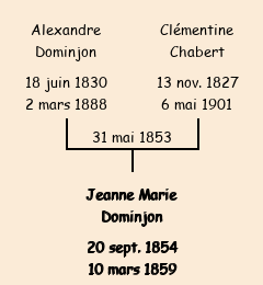 Mère : Clémentine Chabert (ménagère) | Marraine : Jeanne Marie Dominjon (ménagère) |