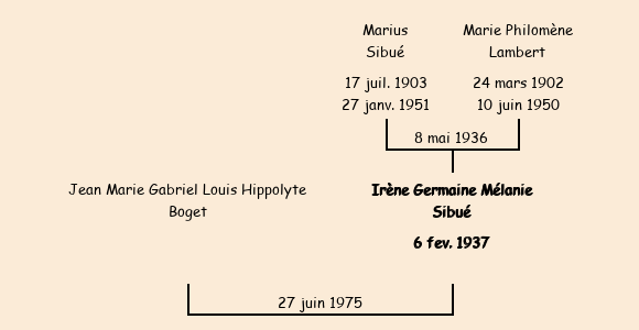 Mariée (38 ans) avec Jean Marie Gabriel Louis Hippolyte Boget le 27 juin 1975 à Chambéry |