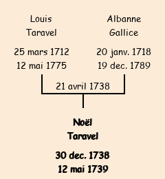 Père : Louis Taravel | Parrain : Noël Sibué d'Alpettaz (fils de Jean) |