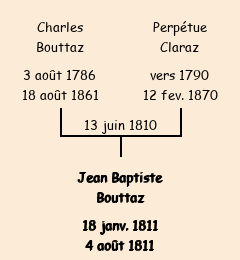 Père : Charles Bouttaz, fils de Jean Michel | Parrain : Jean Pierre Bouttaz (frère du père) |