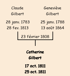 Mère : Geneviève Gilbert, fille de Félix | Marraine : Catherine Gilbert (fille du parrain) |
