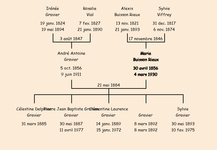 Mariée (28 ans) avec André Antoine Gravier (27 ans) le 21 mai 1884 à Fontcouverte ![]() |