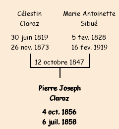 Père : Célestin Claraz (laboureur, a signé) | Parrain : Jean Baptiste Sibué (laboureur) |