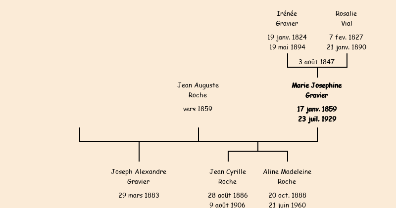 Marie Josephine Gravier apparait dans le dénombrement de la population de 1876. |
