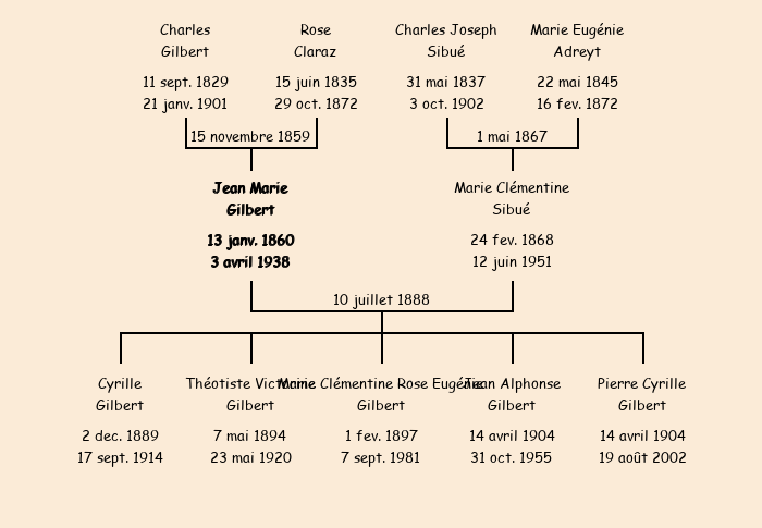 Epoux : Jean Marie Gilbert (28 ans, né le 13 janvier 1860, cultivateur, a signé), fils de Charles (cultivateur, a signé) et de Marie Rose Claraz (décédée le 29 octobre1872) |