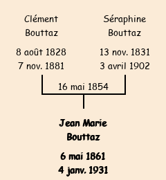 Mère : Séraphine Bouttaz, fille de Saturnin (cultivatrice, 29 ans) | Marraine : Clémentine Bouttaz |